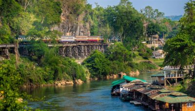 We then boarded a train for a ride on ”THE BRIDGE OVER RIVER KWAI”. The train ride took us on the actual ”DEATH RAILWAY” and on the ”HELLFIRE PASS,” which was built by PRISONERS OF WAR. The scenery from the train was breathtaking.