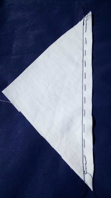 When joining a bias edge to a straight edge, take care not to stretch the edge that is biased, as the seam will not lie smooth. It will ripple.
