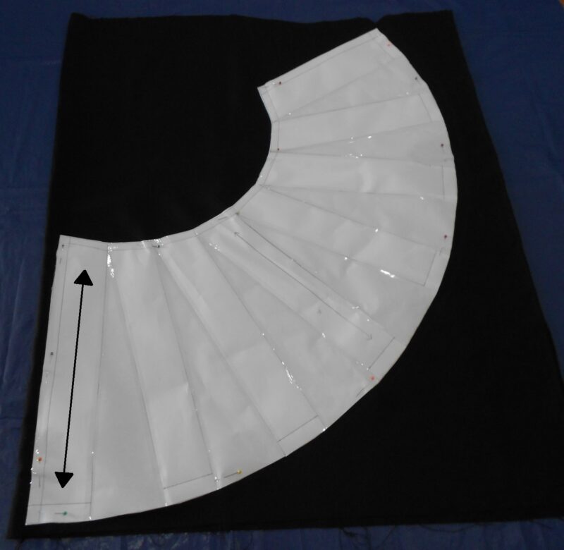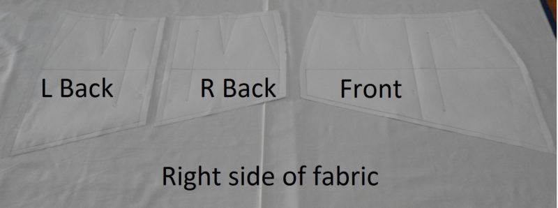 Cutting any asymmetrical garment requires the full pattern to be placed on the right side of the fabric, as illustrated here.