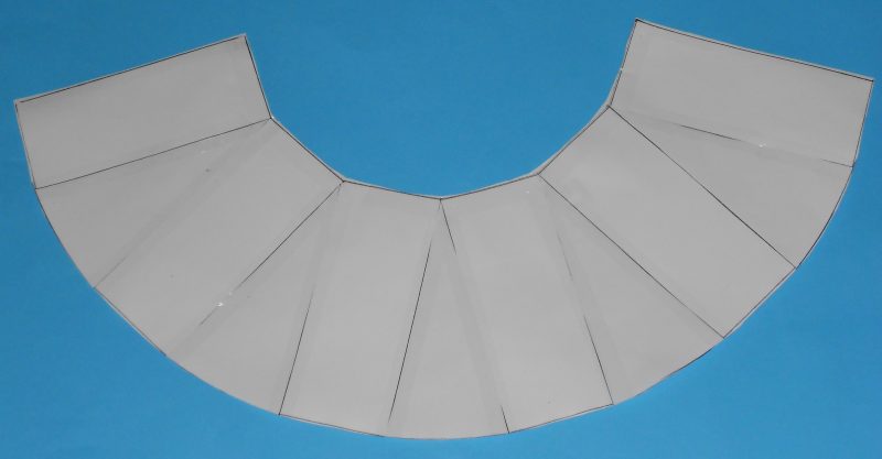 Flounces can be added to a garment along the hemline, armholes, necklines, and seams and can be added as a peplum on the edge of a jacket or top. Even though flounces and frills are not to everyone’s liking, it is still good to know how they are drafted. Flounces are drafted circularly, while a ruffle is a rectangular piece of fabric that is cut on the straight grain. Read the post Three Ways to Gather Fabric for the Ruffles Tutorial. Most lightweight and medium-weight fabrics are suitable to use for flounces. It is best to decide on the amount of fullness required before drafting your pattern. Below is an example of a slash and spread method I used at the edge of the sleeve.