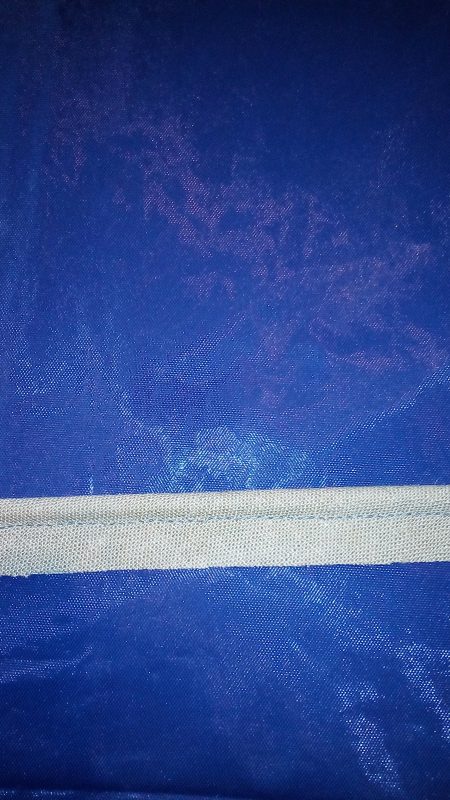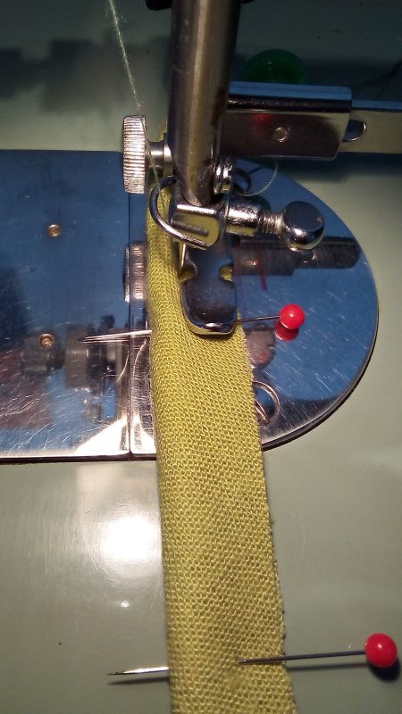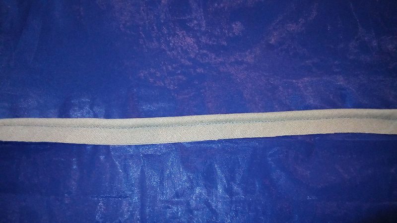 Cut a bias strip twice the exposed width, plus 3 cm for seam allowance. Fold the strip in half, lengthwise. With the wrong sides together, machine stitch 1/2 cm to 1 cm from the folded edge.