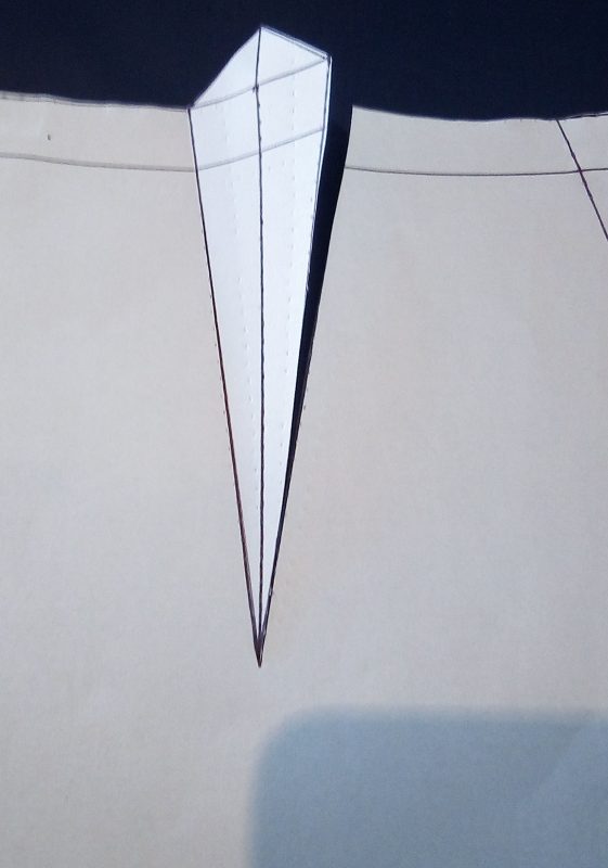 Place the dart over a tailor’s ham and press the dart to one side. Read more about the tailor’s ham in the post on Pressing Equipment.