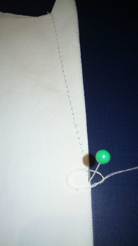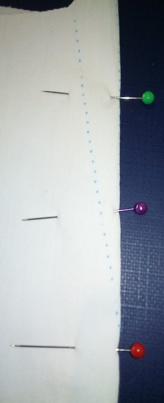 Machine stitch the dart, starting at the widest part of the dart and sewing down to the end of the dart.