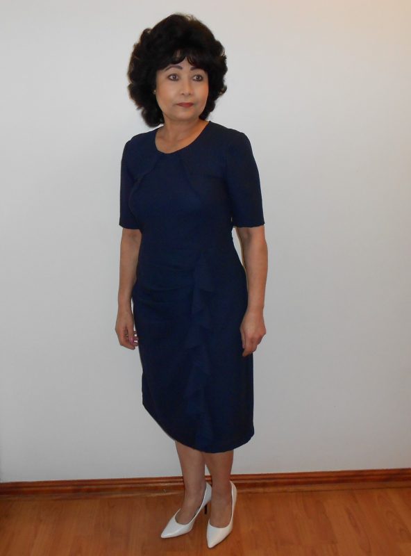 I used crepe fabric for my latest project because it is great for all draped styles. The dress is perfect for any special occasion. It is timeless and has effortless elegance, and I love it.